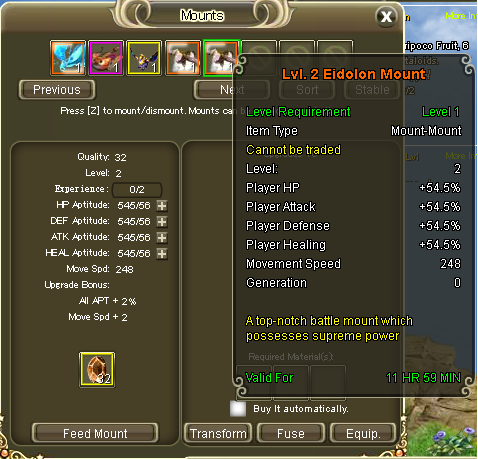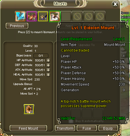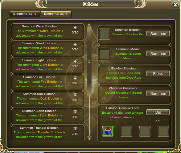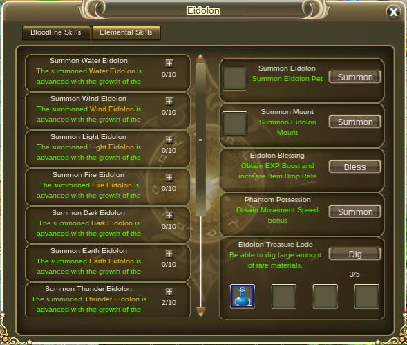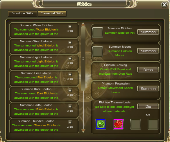 3. Eidolon mount you can only summon once per day, but it lasts 24 hours anyway. Same as above, I upgraded mine to level 2 however it doesn't let me refresh it. I have to wait either after reset or after 24 hours.