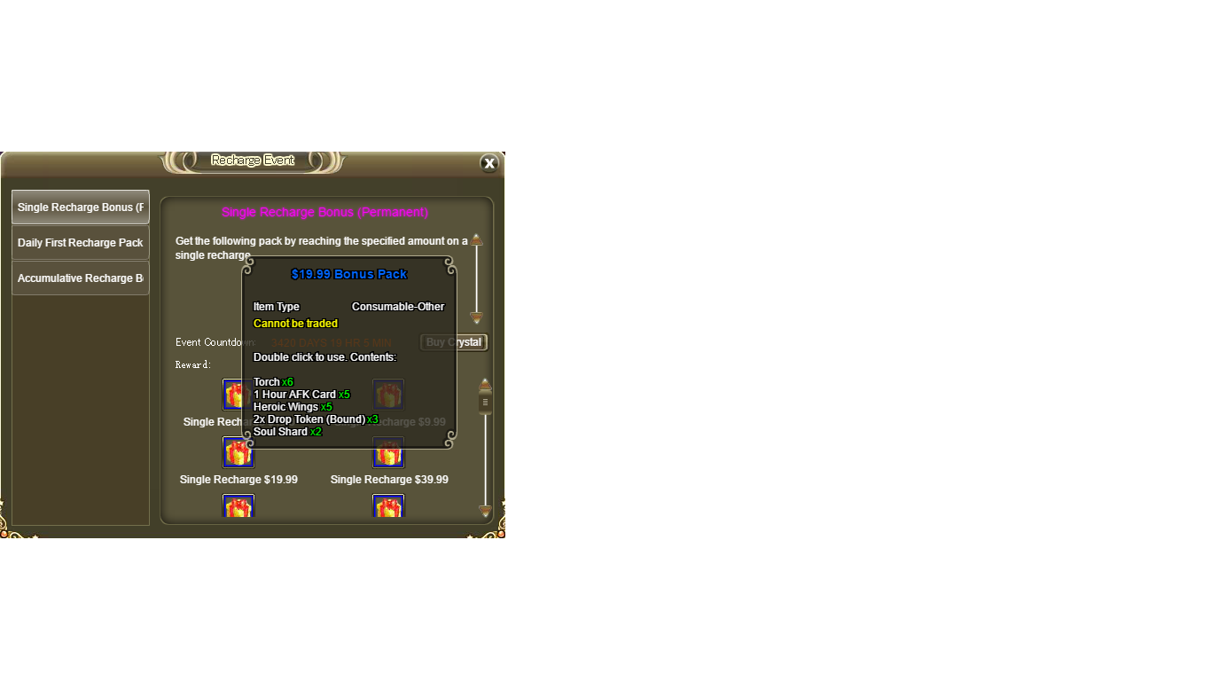 or will i need to wait for server to reset and recharge 19.99$ again to recieve the pack?