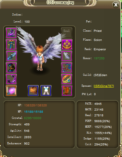 Just curious, to the owner, is that stats fully priest buffed or ..... ?Originally posted by DahTeddy View PostI've never heard of this person or not, and i'm hoping she's in ladder or seng or something. but +13 slayers, level 20 hellwing, Ulti Demon Lord +9. [ATTACH=CONFIG]20315[/ATTACH]