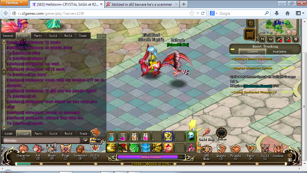 Type /Ldoiized and say something, you will PM that scammer alt. View it, you will see that it is a LvL. 1 Knight, Female. NONE OF THAT MATCHES with the current Idolized.Originally posted by BobyJimjam View PostHaha, everyone saying there is a character with replaced letters is wrong. I checked about 10 mins ago. There is no character except the real idolized with any replaced letters.Crystal Saga: