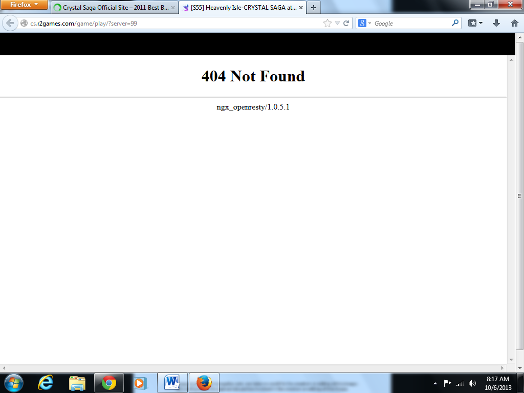 I was in Blackrock Gorge (10/04/2013) and suddenly it says, "404 Not Found". I tried refreshing over and over again, but to no avail. I tried opening it again now, but it still says, "404 Not Found". Is it just my browser or does anyone else experience the same thing?