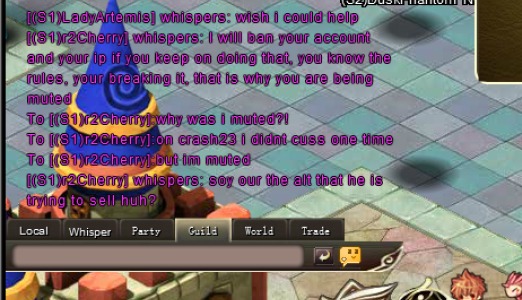 just thought you would like to know the entire story as to why. so in world chat we were joking as usual i said something stupid meaning to be funny "WTS 2002 impala ss on 18' AR rims" someone else said something along the same lines, then i said " wts scion/edilon accounts" and got muted for 4320 hours. i didnt understand why so i logged on other accounts until cherry finally messaged me, i tried to explain to her it was a joke and wanted unmuted...i knew she was the one to mute me anyway you guys arent the only ones that can get ip's...Last edited by R2CS_Mark; 09-24-2012, 10:25 PM. Reason: Removed details for things that needs to be investigated first
