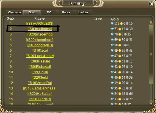 Problem? - Seems like there are lmallmmos as gold ranking #3 in many servers. R2 you do realize that those gold hackers fools players to log in scamsites and that most likely causes them to get banned/lose their accounts = They probably ragequits out of frustration after getting banned/losing account and that's why won't spend money in the game? You probably better to investigate this.Originally posted by hoss9424 View Post[sarcasm]