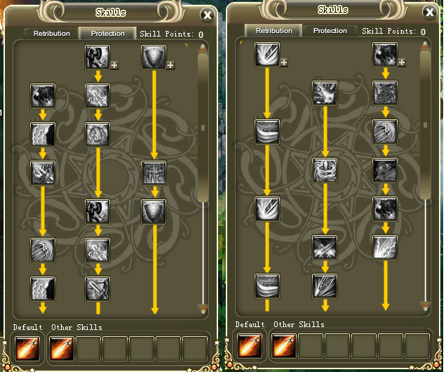 Hybrid Retribution (focuses on dealing damage to your enemies, I would recommend this skill build for faster dungeon runs)