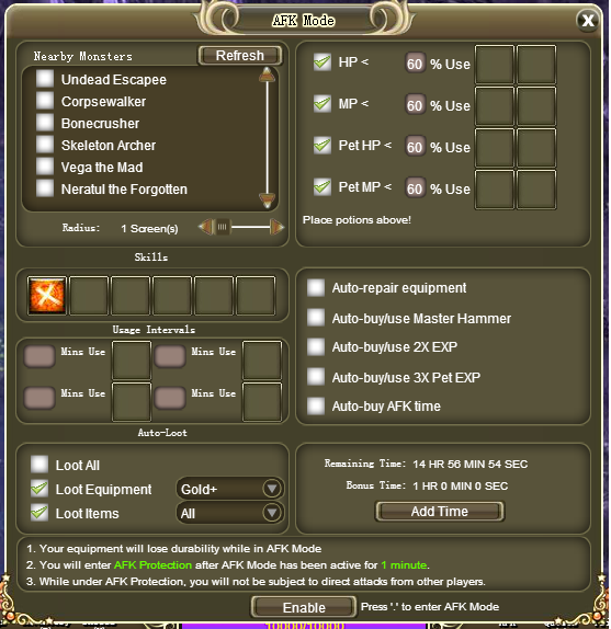 Angel's Blessing - V - passive skill that restores HP and MP every 10 seconds, with this you can solo Bath and you don't have to worry about potions anymore