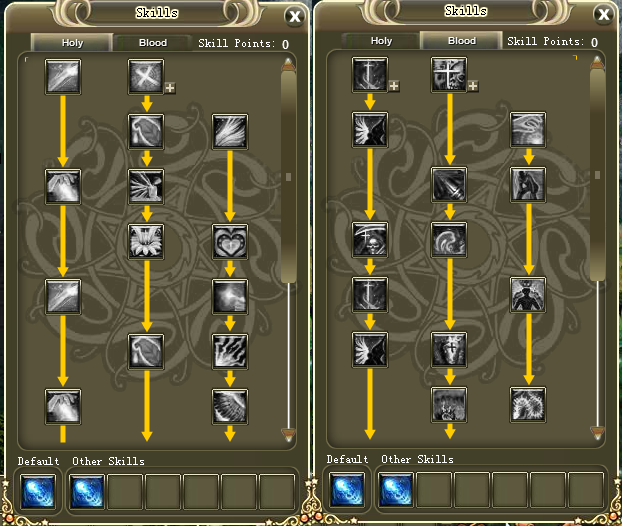 Hybrid Priest (this is actually my favorite, although the skills in Blood Tree will not help you do dungeons because you are only gonna heal your Knight, I still like those skills because with them, you be able to grind well and kill enemies faster)