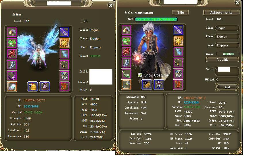 Attached is a screenshot of my toon, plus that of another rogue of similar stature but full str. Neither toon is using blessings and ive removed names to avoid bias. The thing i want ppl to look at and try to explain is the dodge and crit point values in comparison to the % value.