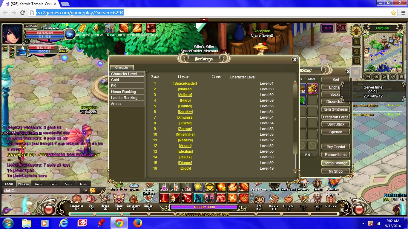 Prizes will be sent out once the GMs confirm ranks -- if the event was active for said server, that is. I will inquire on S76's Legends of Vidalia status and update this thread accordingly.