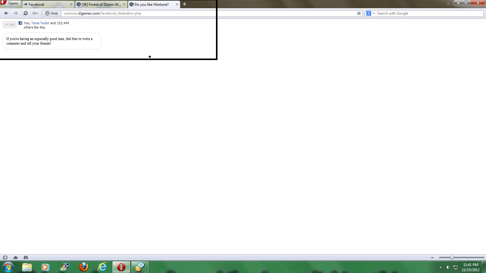 1) Log-in Facebook and make sure that the official Fan page of Wartune's is not "Liked". Unlike if it is already "Liked" then