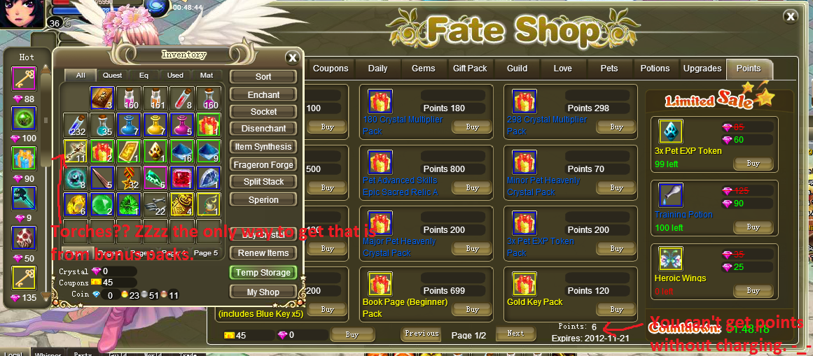 but the problem is he said he didnt recieve the crystals i charge him . you can tell on the third picture that the charged was succesfull, and on the second picture you can also tell that he just used up all the crystal i charged him and tell me i he didnt recieve it, cuz look theres still points left and where did he get those 11 torches -_- . so he lied and told me he didnt recieve any. Zzzz . Its up to you what you wanna do with this char. he's ign is (PaSaWaY). and your prbbly wondering how i got those pictures or got in his account? he gave me that account right after he spent all the crystals,.