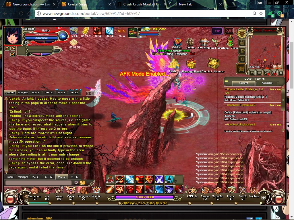 My name is Jake, of the Newgrounds Hosted Crystal Saga server. I am attaching a picture of a load attempt of the Crystal Saga log-in page. It shows the 2 errors at the bottom of the page, and what the error functions are stating. Hopefully this helps.