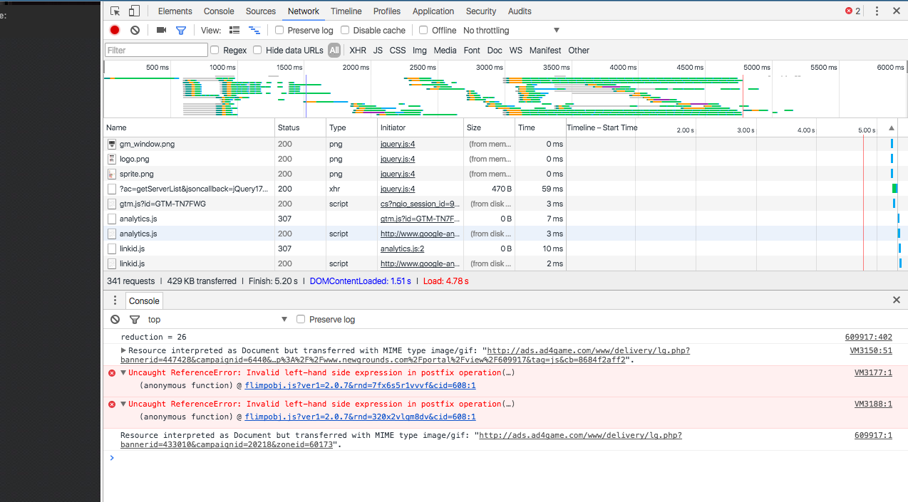 Edit: I'll also state that the Error code seems to change each time I re-load the page to test it too. In the attachment I gave earlier, it shows an error code of (VM3117:1) and (VM3118:1), but when I re-loaded again (after a few times of re-loading) it gave me these codes: (VM4431:1) (VM4448:1). It did happen to actually load the game in this case, though.
