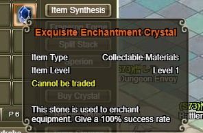Show me a screenshot of the description for the Exquisite Enchantment Crystal, please. Also, please provide your character name and server. You can reply to this thread with all, or send me a pm if you don't want to post your character name on the forum.