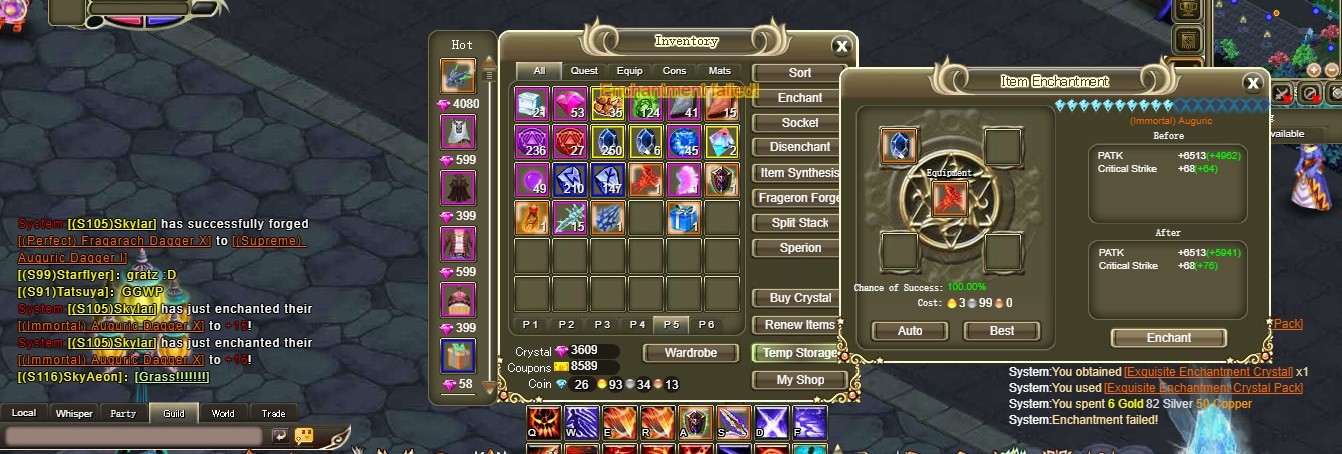 and I mean if it doesn't say 100% chance of success I would have add Dragon Crystals or another Exquisite Enchantment Crystal just to make it 100%