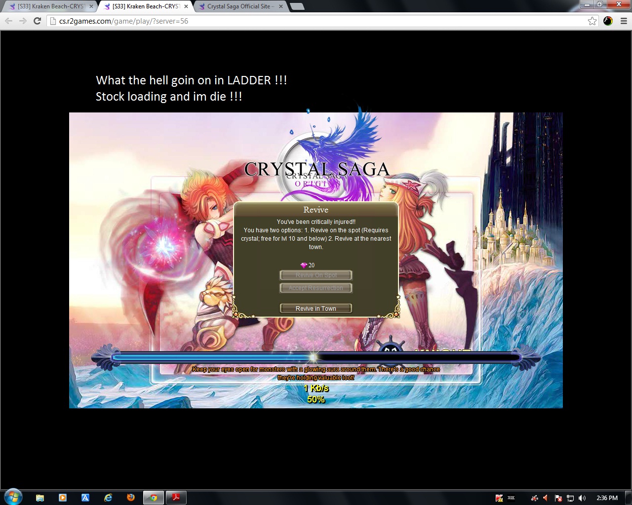 tried it today... and opened my alt ... but still got stucked at 50% in ladderOriginally posted by HunterGS3 View Postme<< stuck before..go to setting >>>> empty cache/cookies.problem solved for me
