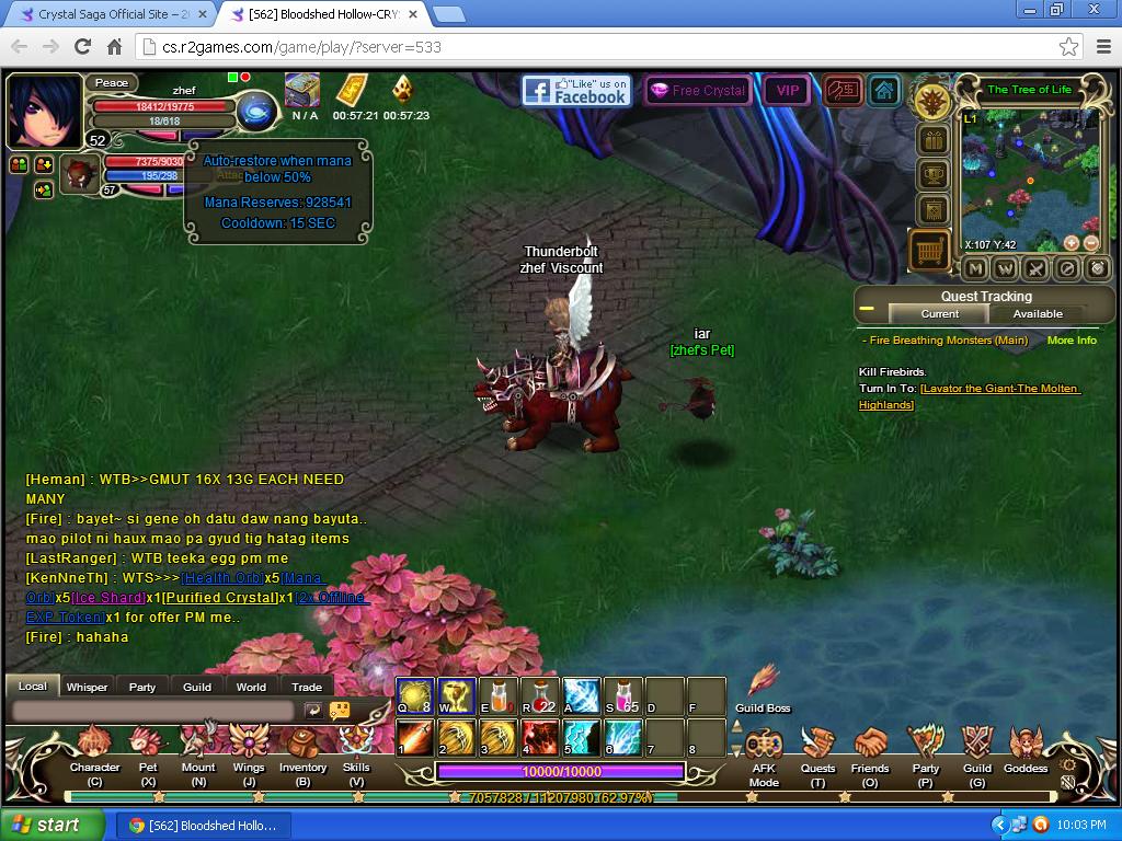 sigh, bottomright, System-button, check the square "Auto-restore when mana gets below 50%". Fixed.Crystal Saga: