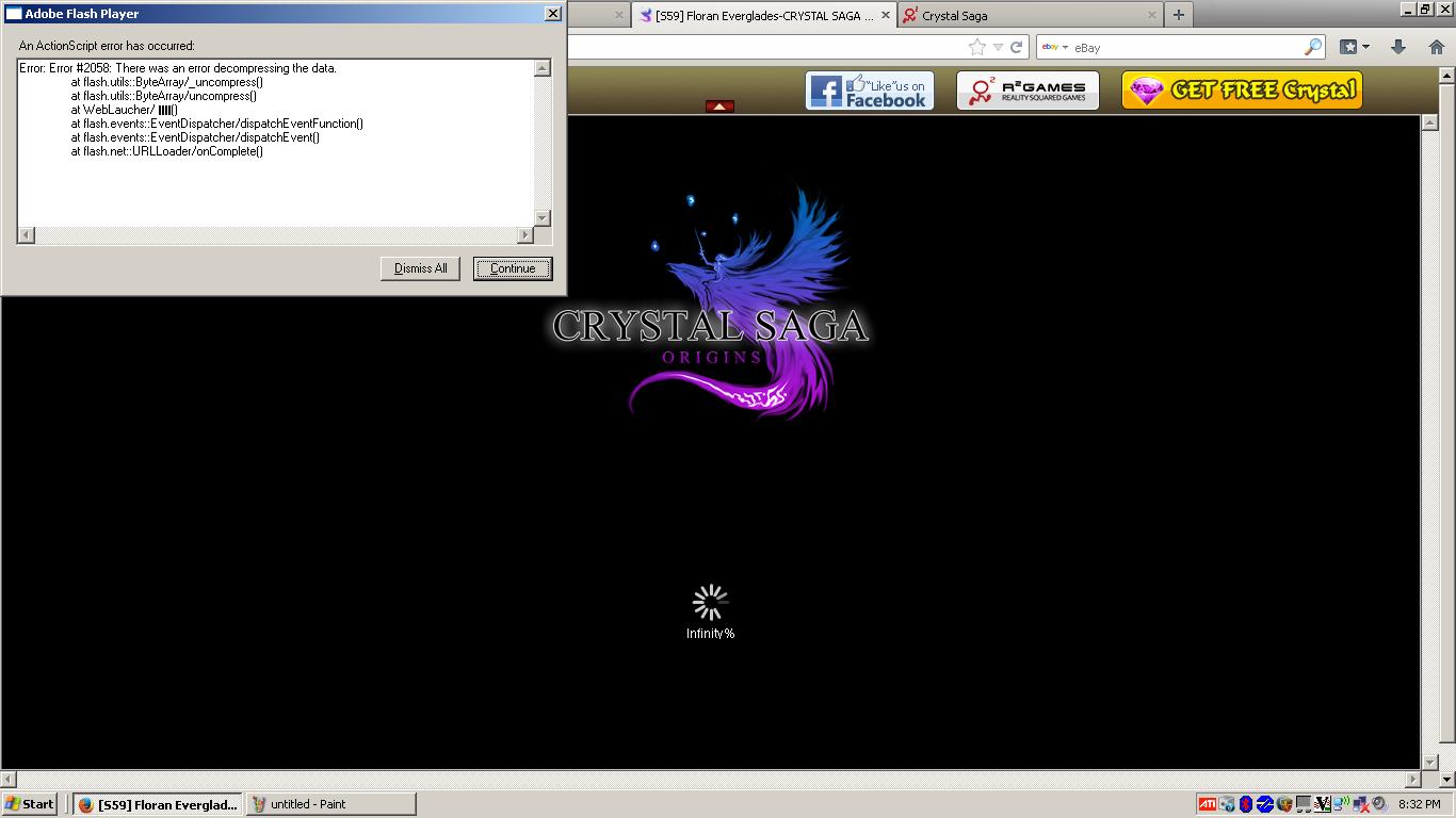Thinking that my laptop has some issues, I tried loading Crystal Saga through Aeria.com.