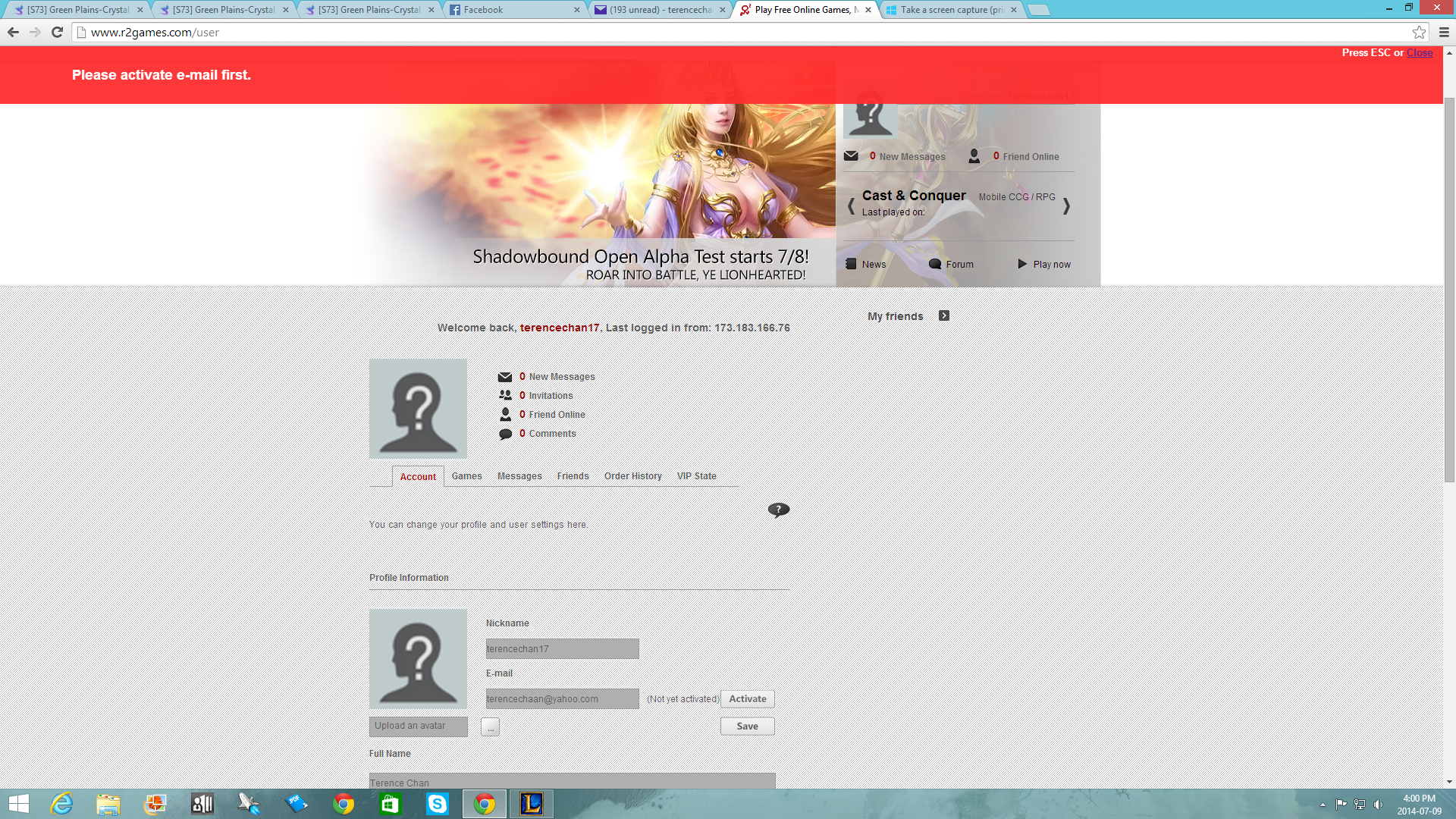 I already activated my account on yahoo, but when i go to VIP state in account it says "Please activate e-mail first"