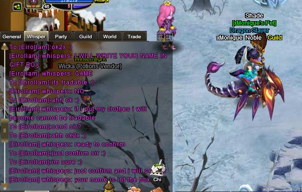 Player name: Eirollam Scammed me, he said , he will sell me costumes , but he just took my 1p