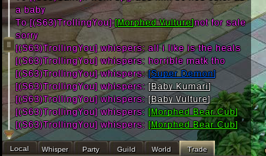 this guy was saying all kinds of stuff about me getting mad bc i wanted his pet book and he told me it wasnt for sale, when infact he wanted my pet and i wasnt going to sale it hes been trying to troll me for over an hour just letting my server know what he said since hes lieing in world chatLive Long and Prosper 3(0.0)