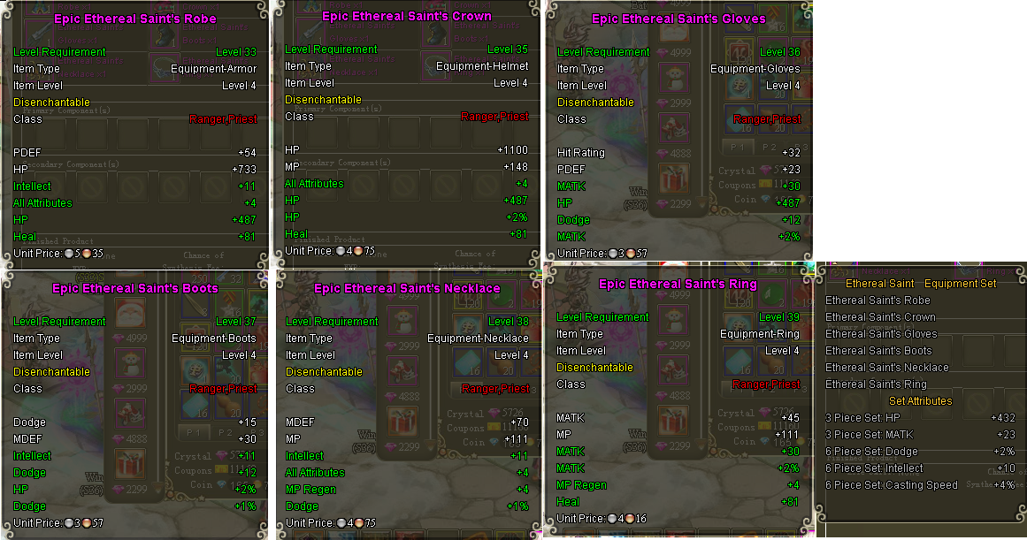Hello, just something i'd like to shoot by. Spoke to alot of players and they agreed it would be nice if implemented. Here goes, I know there already is an epic gear set for nature rangers which is the Epic Saint Set. But the thing is that it gives us Heal and Cast Spd. which we nature rangers don't use. So basically its almost worthless to wear unless you hybrid it with savage gear which won't do, I only use savage and slayer gear on my nature ranger. What i'm trying to say here is that we would like an epic gear set for nature rangers like the Epic Dragonslayer Set for Anti-Mage Rangers but instead of Patk and Str. let it give Matk and Int the rest can stay. It would help us alot if that can be done and would be greatly appreciated.