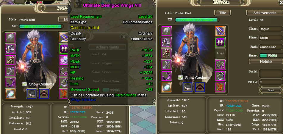 I've never been much a fan of wings cause I always noticed the boost was so small now I see why so I always save wings for last but my suggestion would be to allow wings to be affected by % bonuses that come from armour, mount, pixie, and soul, etc.