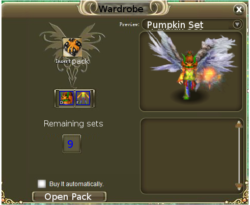 Packs that are available for purchase that contain 10-100 costume sets in a box that when used releases a costume set that's trade able of certain type, until fully consumed and either vanishes or can be refreshed with crystal