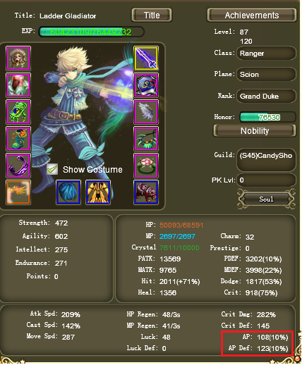 Instead of just leaving it as only the number make it so it is something like 108(10%) and AP Def something like 145(10%)