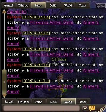 So my suggestion is to add more to the system setting interface (the button beside the goddess button). Add an option to turn off player related system messages (for pet morphing, hatching, socketing etc) and an option to turn off system messages related to events (like seng when someone destroys a crystal, or when GR opens/closes). Or bring in the bullhorn channel and USE IT ONLY FOR SYSTEM MESSAGES. then system messages can stay out of our guild and party chats. It really just straight up annoying when we see messages go across our screen AND flood our chat at the same time. Especially when it messes up my party chat, or even world/guild chat when trying to talk to ppl there.