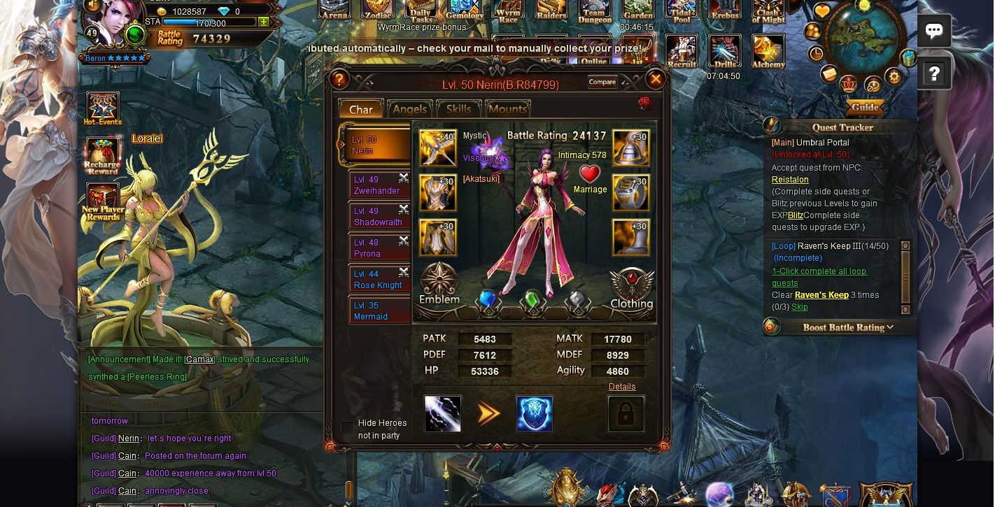 Details: I seem to be unable to get intimacy points with my in-game fiancee, Nerin. We started working towards marriage two-three days ago doing the typical wyrm escort, compare fights, and garden grind. Today, we only got to 52 points from planting and watering when we completely stopped getting points. We still get intimacy points with other users. The only characters we don't get intimacy with is the only people we actually care about getting them with. We haven't reached the daily limit, so... I think it should be considered a bug. Can't screenshot something that's not happening, so... No screenshot available. Sorry.