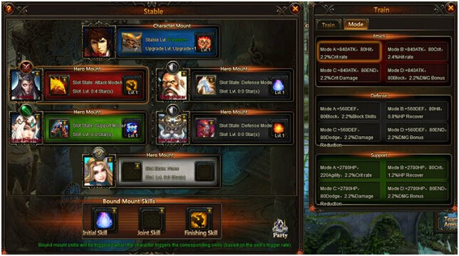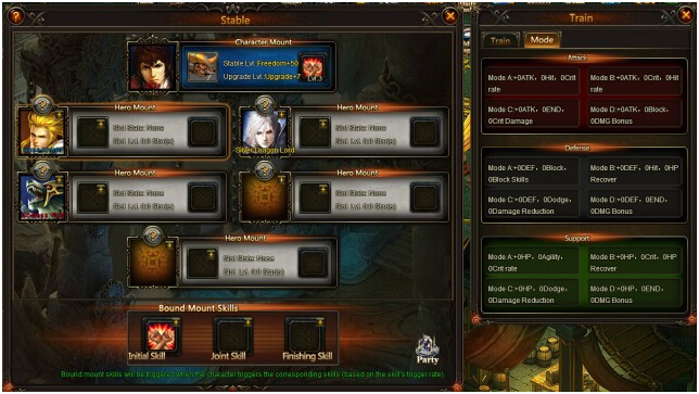For more detailed information check out the system in-game, and start discovering the most powerful skill and mount combination for your party!