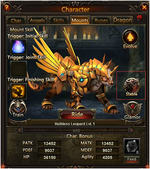 The stable is a brand new addition for Mounts. It enables players to make full use of all their awesome mounts and skills. By using the stable, players can now assign various deployed heroes with a suitable mount and skill combo set. Players who choose their mount and skill combinations wisely will now have the chance to beat players with higher battle ratings!