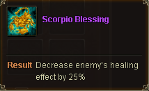 Leo Blessing will give you more hit for your heroes. Libra will increase the crit damage for your hitters. Scorpio will reduce the healing amount of the enemies healing skills.
