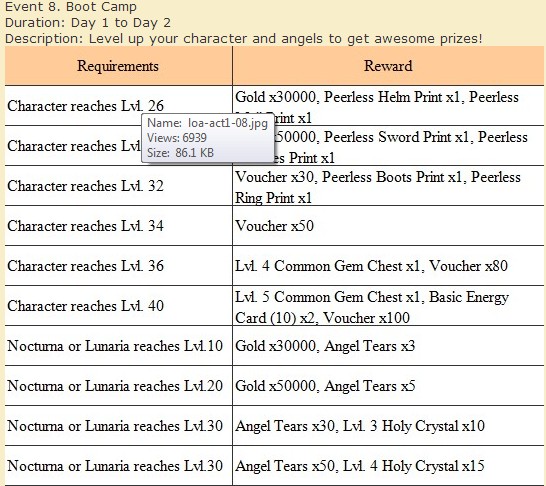 Next is list of current angels Level cap and grade levels they use holy crystals at.