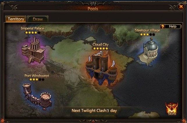 Twilight Clash in League of Angels is a Guild vs Guild battle where 2 guilds fight for control over territory.