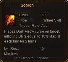 Partner Skill: Chance to trigger when your Hero cast Trigger Skill. (deal damage or buff)