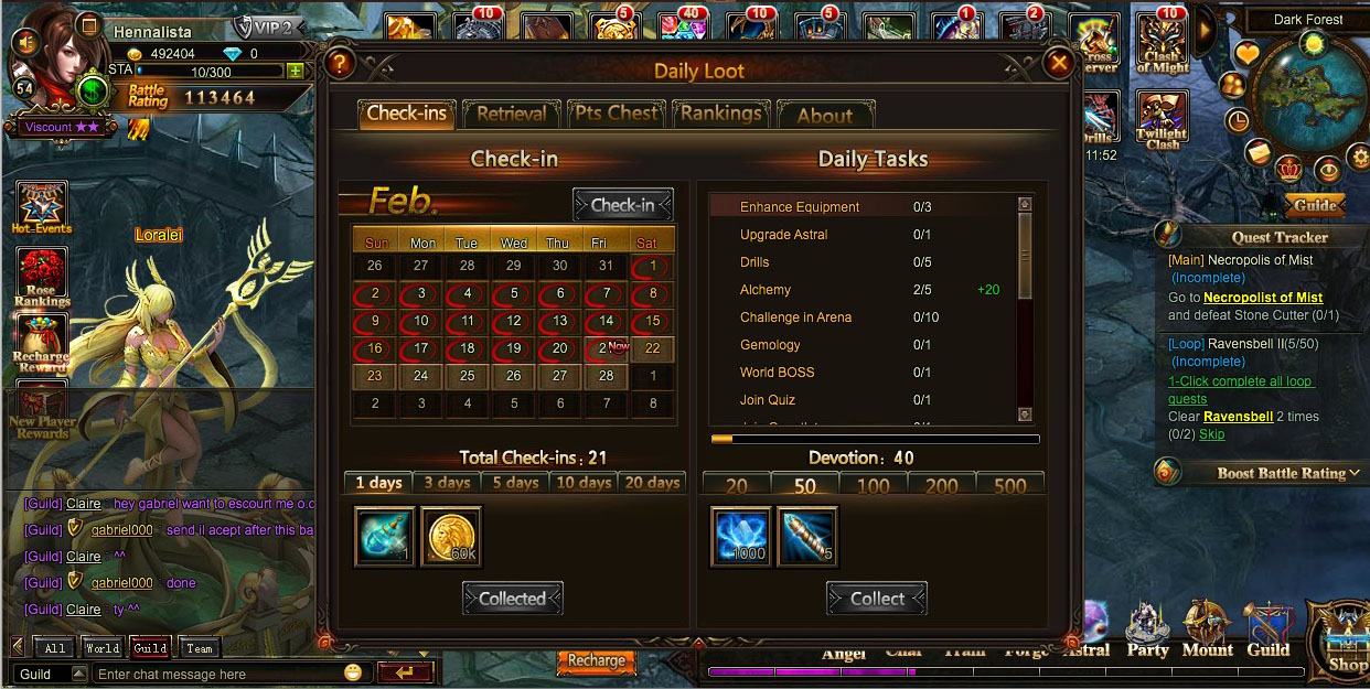 Lastly, don't forget to check in every day and collect your devotion (try for 500 every day!). I think this some is easiest because it glows to remind you to do it. ^.^