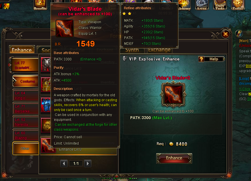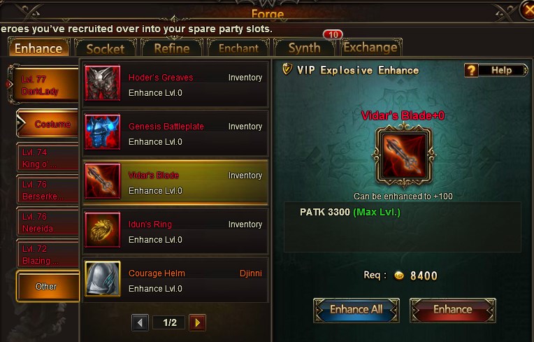 Echange Vidar blade then enhance ... Dont work for me ( cost me 2M gold to know that )