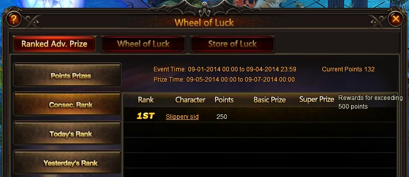 Both the daily and consecutive prizes are missing from the Wheel of Luck.