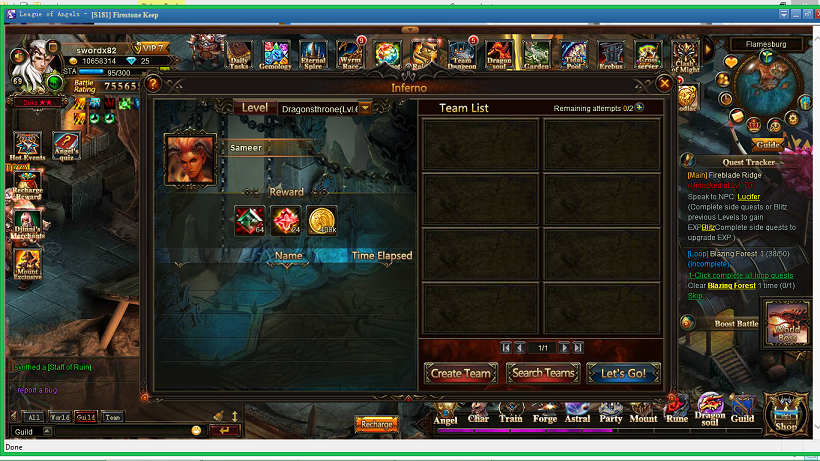 Server and the approximate time you did the inferno attempts?