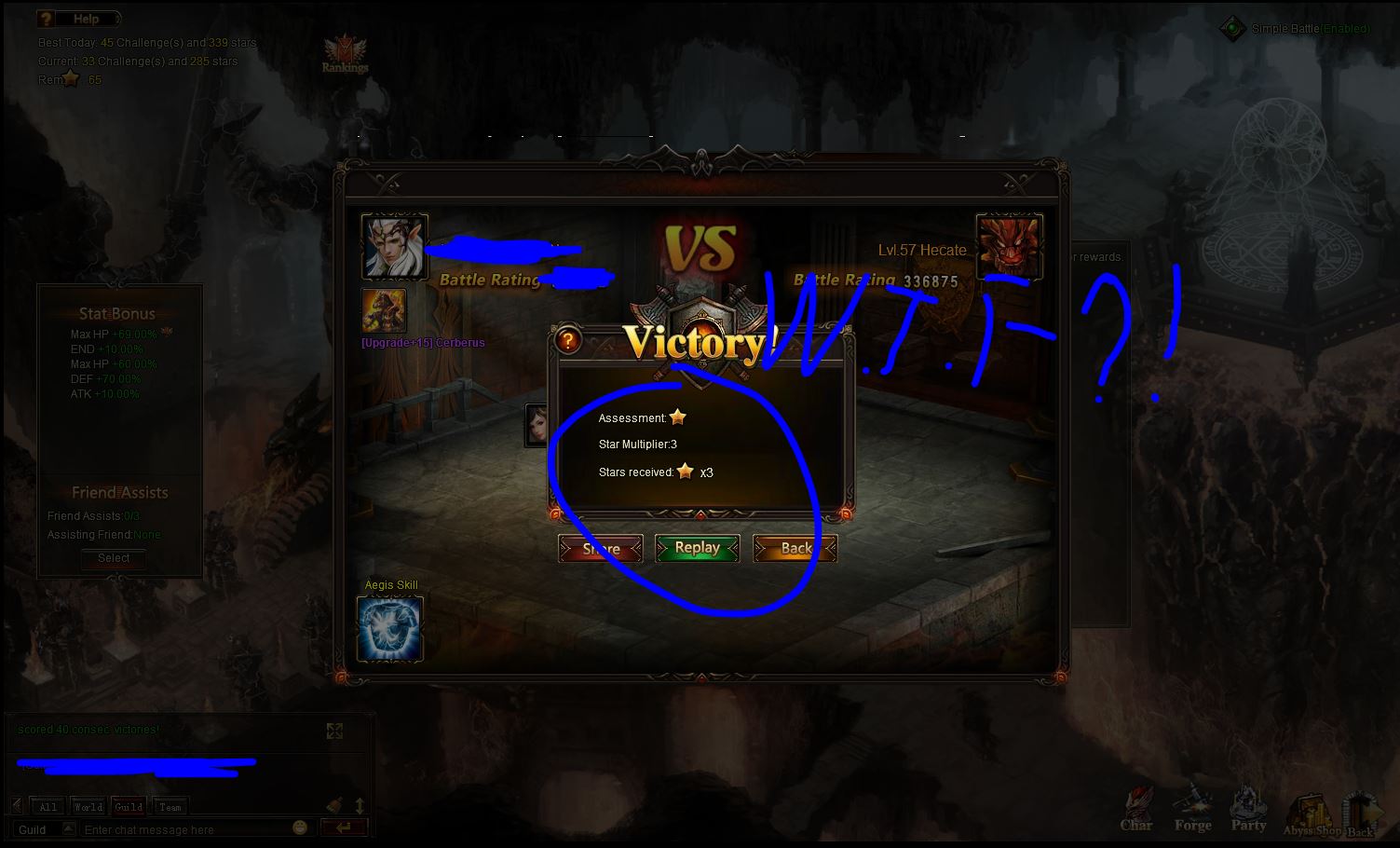 I believe it was 5 rounds for 3, 10 for 2, 15+ for 1 star. So if you're fighting as in this case 5 hecate heroes that just contantly heal, you might not kill them fast enough. Same goes with other enemies like Astral Hunter that gives insane amount of DEF on the later stages or the centaurs that have pretty high base DEF<--- 700k+ BR Claw