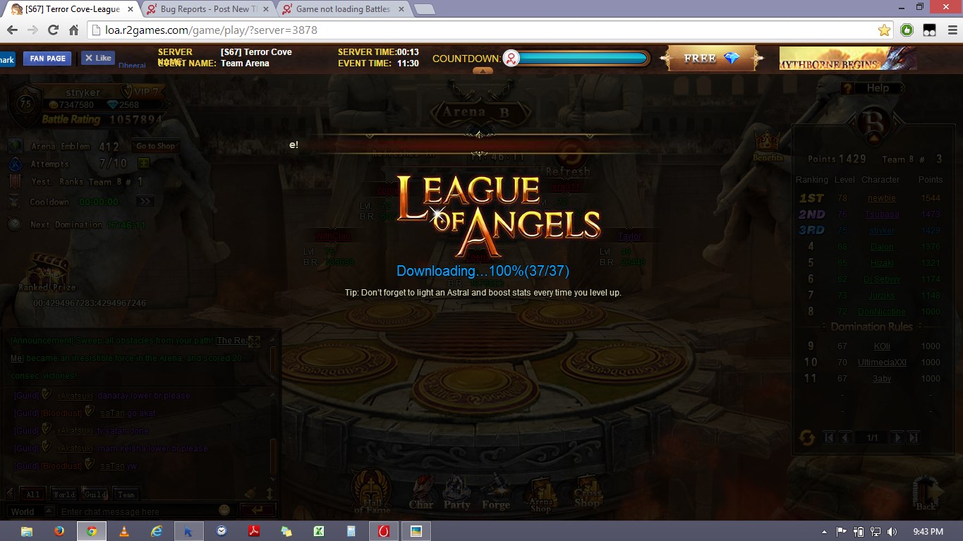 most of the PvP and PvE battles, like Cross Server, Clash of Might, Arena, Totems, WB, etc load the battle to max, but nothing happens after that, the screen gets stuck on that...even the attempts decrease, but no wins are given. (note that in arena and ClashofMight, i only attack those whom i sure can beat). this is causing me to lose loads of ingame stuff like gold, seraph, soulstones, blessedstones, sacrifice points, totem badges, honor, Vouchers, element crystals, etc...which subsequently results in me losing a huge number of points in the ongoing Cross Server Tycoon. Request you to please look into the matter ASAP. below are 2 screen shots, take at a time gap of about 13 minutes with the same loading screen on. you can see that the number of attempts are the same, the time in the computer clock as well as the server clock, and other things to verify.