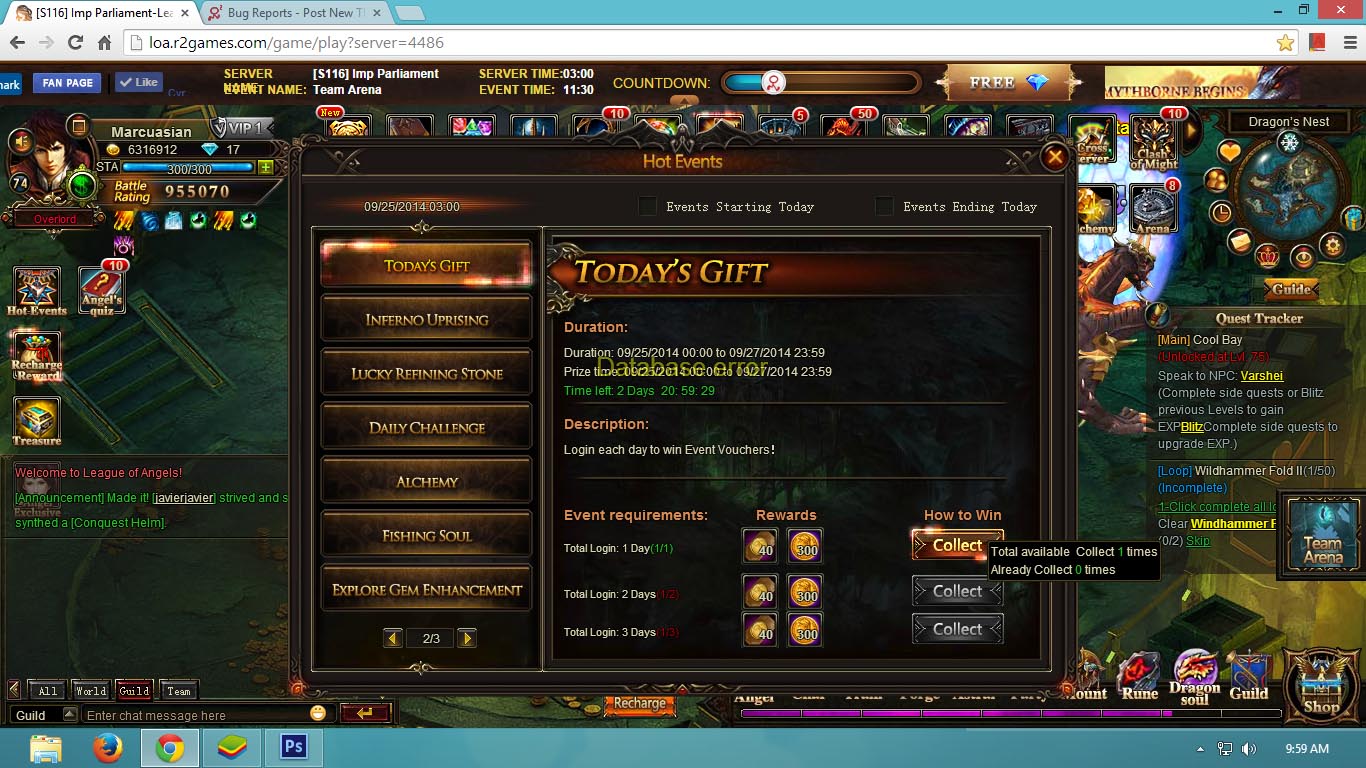 Details: Database Error on Collecting from Hot Events >>> Today's Gift and Omnipotence >>> Quiz Voucher and Aureus