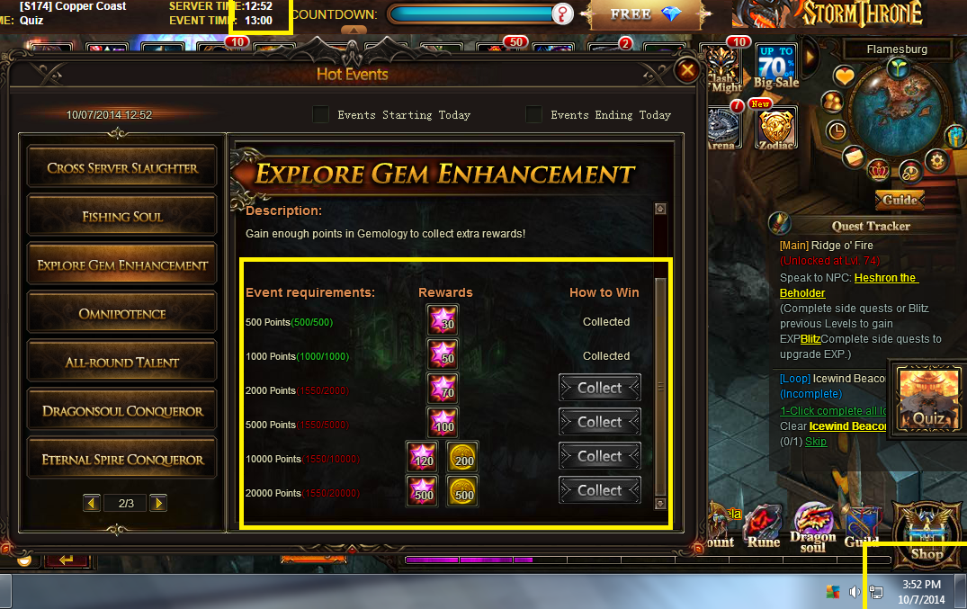 I am trying to compete in the Tycoon event and doing gemology for points, including those from collecting rewards in gemology. However, I am lost as to why my rewards are showing as collected even though I only have 1550 points at present for today. Please note time and date in the following picture.