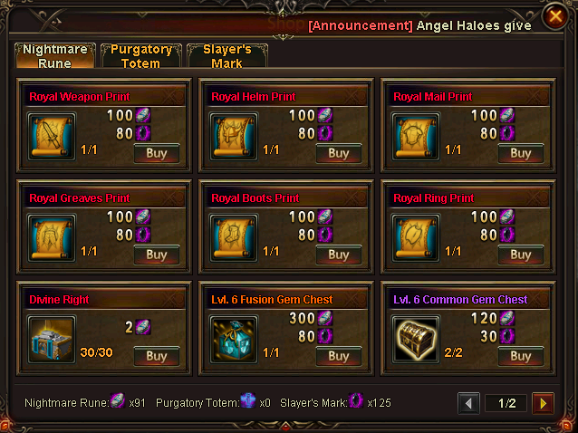 try look at once again when you have finished 101-105 and 105 -110 just like nightmare rune .Originally posted by VIPKillerr View PostMy rank in abyss reached up to 110 yesterday but i didn't received any purgatory totem. Please i need an advice how to earn this totem. SS below: