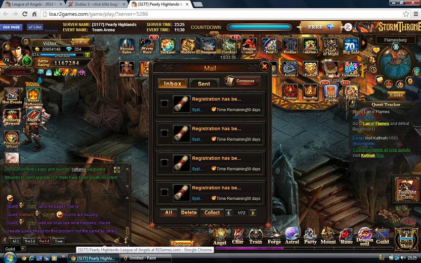 Last round of Twilight Clash on server 177 - Pearly Highlands didn't work, now getting constant spamming on registration mail for the event and loop quests are constant changing every few seconds