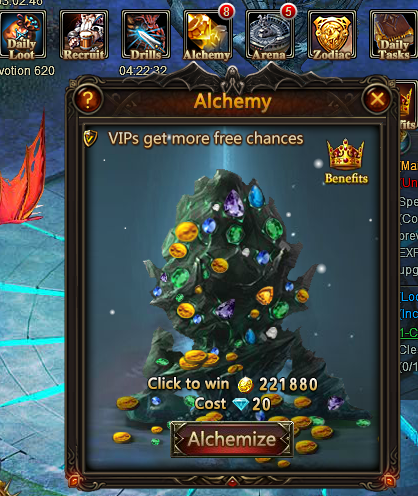 For the last 2 days i can't collect alchemy and my VIP although i did not collected it, seems to be collected. And probably there are more things bugged in daily stuff but it is not my job to point it at you, to get them fixed. Seriously it's your Game, just do something about it and fix it. There are too many bugs in this game allready and it's getting old the whole bug here , bug there....