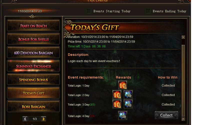 The Facts is, you always have a lot of problems and Bugged.Originally posted by R230785 View PostI remember collecting day 2 day 3 was greyed out until I refreshed at reset then it said it was collected so im pretty sure it has bugged out. would be great if an addmin/forums mod could take the time an look into this please I know its very hard for them. since they do nothing all day but view post an move on with out a comment.