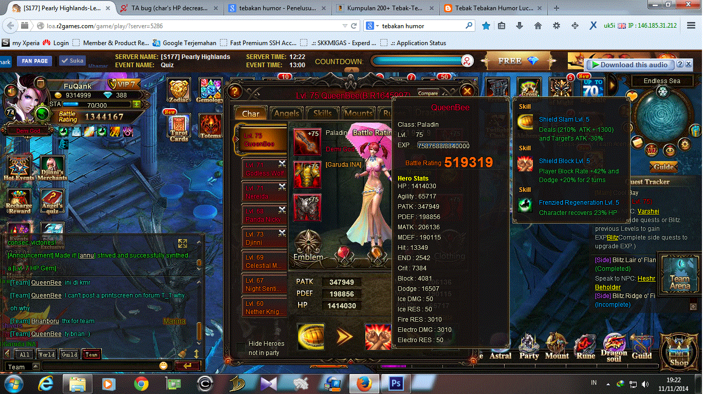So, yesterday I realize something's strange with my char inside TA, her HP went down to 1.1M while the actual HP was 1.4M. I tried to send ticket but I can't upload the PrtSc image so I postponed the report, in hope that today it will gone good just like usual. But when I went inside TA today, it remains like yesterday. And I don't know why I still can't upload the screenshot.
