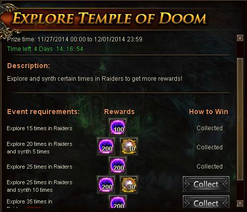 Can't collect reward from event Explore Temple of Doom
